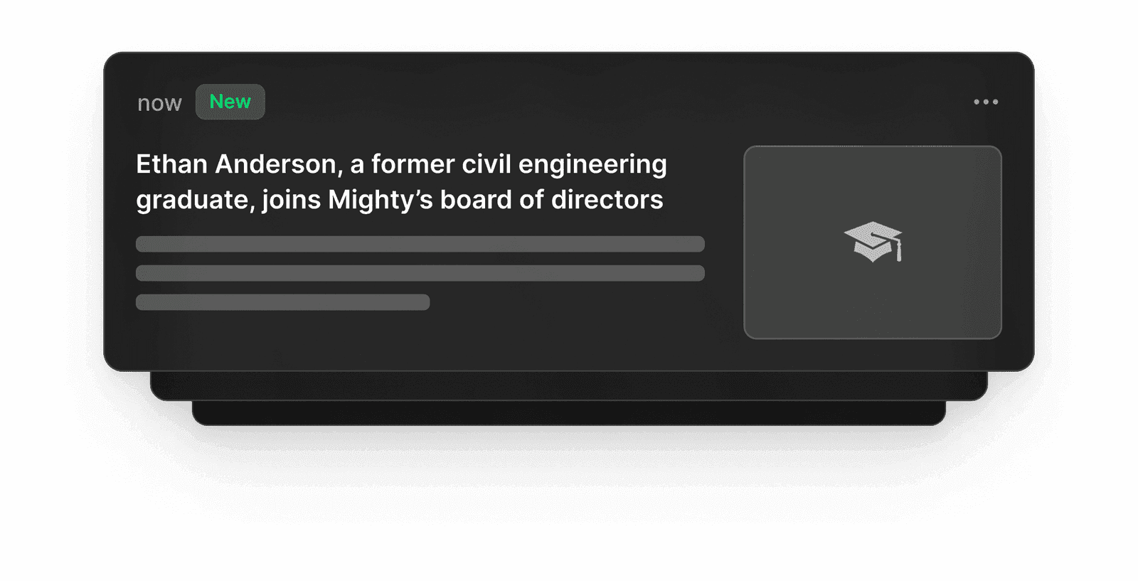 AI-powered monitoring scans global web content, news wires, and professional networks to identify mentions of your alumni. With unmatched coverage and real-time tracking, our solution ensures that every success is captured as it happens—so you can make the most of it.
